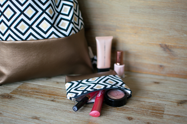 Mit viel Liebe von Hand gefertigte Kosmetiktäschchen begleitet dich in deinem Alltag. Zum Beispiel in deiner Handtasche oder Turnbeutel für Kosmetik, Handy oder anderen Kleinkram. Sie besteht aus einem robusten Baumvoll-Canvasstoff sowie goldenem Kunstleder. Innen ist das Täschchen mit einem hellem Baumwollstoff gefüttert und zum Verschließen wurde ein Reißverschluss eingenäht.